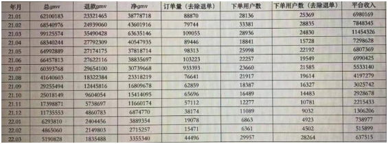 有员工透露,公司近一年多GMV 下滑严重,且一些钱款去向存疑,原来公司的运营、增长归属同一个部门,2020年10月开始把增长部门单独拆分出去,带来的结果是增长和营收数据都出现了下滑。" 电商都是要靠用户增长去拉动营收和整体大盘的,架构调整后,公司四个仓的单月净 GMV从巅峰时的近一个亿,到去年下滑至 6000 万上下,公司‘暴雷’的前一个月,净GMV 只剩下数百万。"